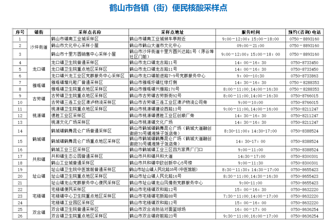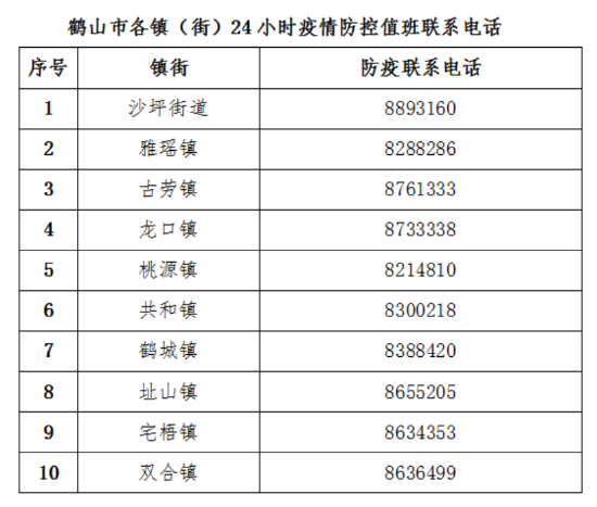 点击链接查看详细信息:鹤山市各村(社区)疫情防控报备电话