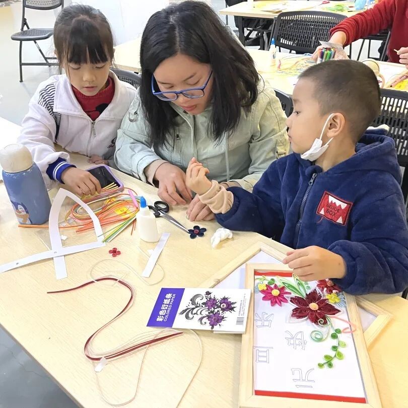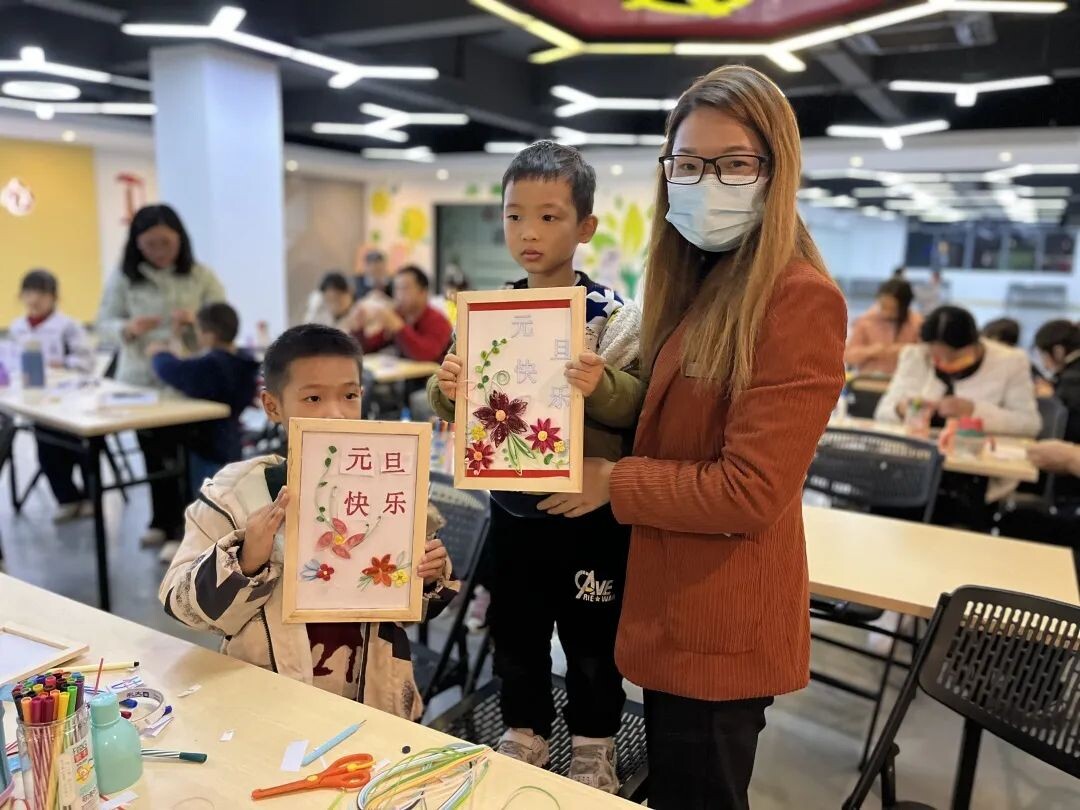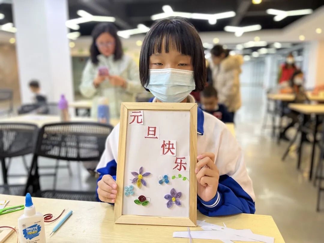 有家长表示这是第一次做衍纸画,跟孩子以特别的方式迎接了元旦的到来,看到最后做出来的成品,觉得很开心,度过了一个开心的亲子时光。