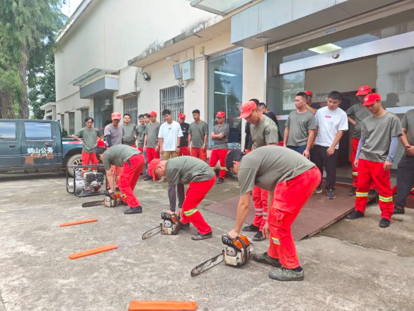 ▲镇农办和应急梯队对应急设备进行检测调试,做好防汛准备