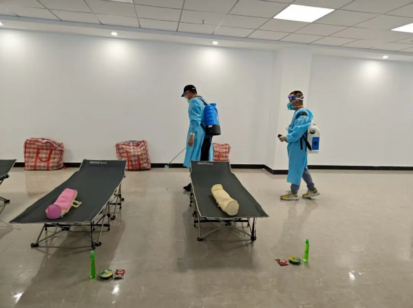 ▲组织镇消杀队对全镇避难场所开展灭蚊工作