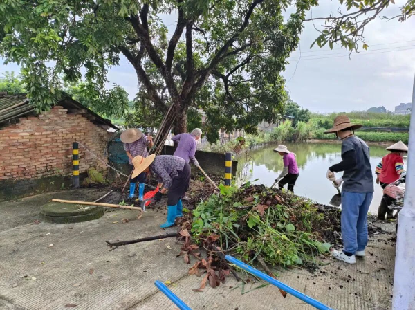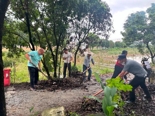 党员群众手持铁锹、扫帚、铁夹等工具分工协作,或深入绿化带清理枯枝落叶、塑料袋等杂物以减少卫生死角,从源头切断蚊虫滋生环境;或对巷道角落、公共活动区域的堆积杂物进行集中清运,避免杂物堵塞排水通道、滋生蚊虫;或沿村内沟渠逐段排查,发现淤积淤泥便合力铲除、用推车清运。不少群众主动推来小推车参与垃圾转运,还有人对首轮清理区域开展“回头看”复核,在紧密配合中全力清除积水隐患、改善村容村貌。