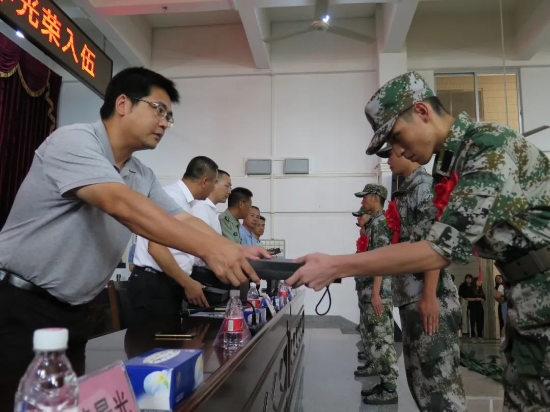 镇长梁志源代表雅瑶镇党委、政府,向光荣应征入伍的10名新兵表示了热烈的祝贺,向积极送子参军、支持国防建设 “舍小家、为大家”的新兵家长们表示了崇高的敬意,并寄语新兵: