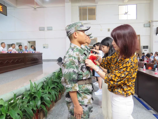 会上还进行了授花仪式,寓意“朵朵鲜花迎战士,声声爆竹送新兵”。镇主要领导为入伍青年送上纪念品,并合影留念。