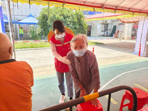 ▲云东村驻村第一书记刘晓扎根核酸检测现场一线,指引群众有序等待