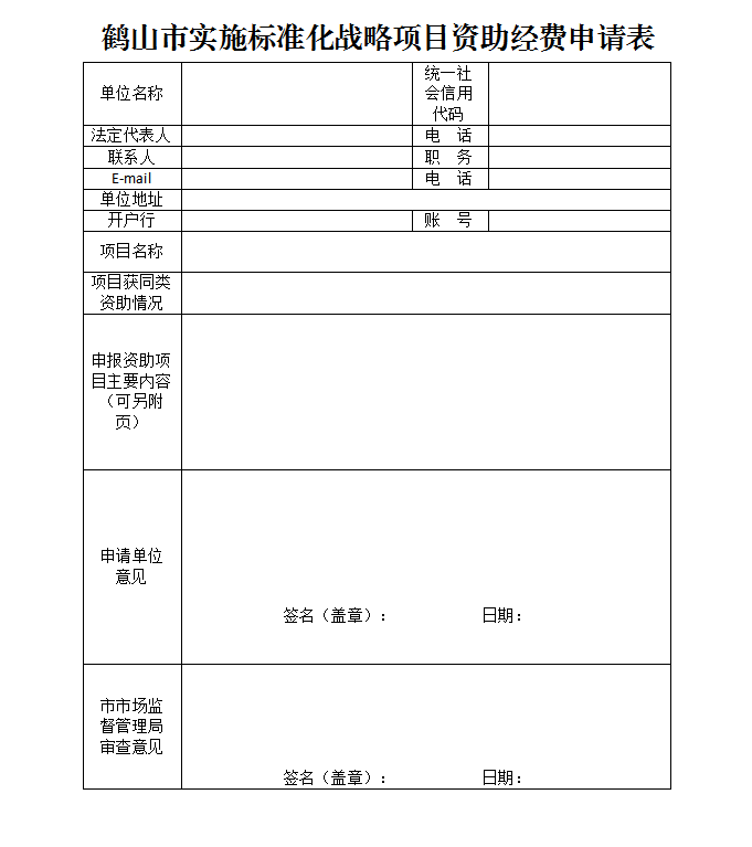 附件:鹤山市实施标准化战略项目资助经费申请表