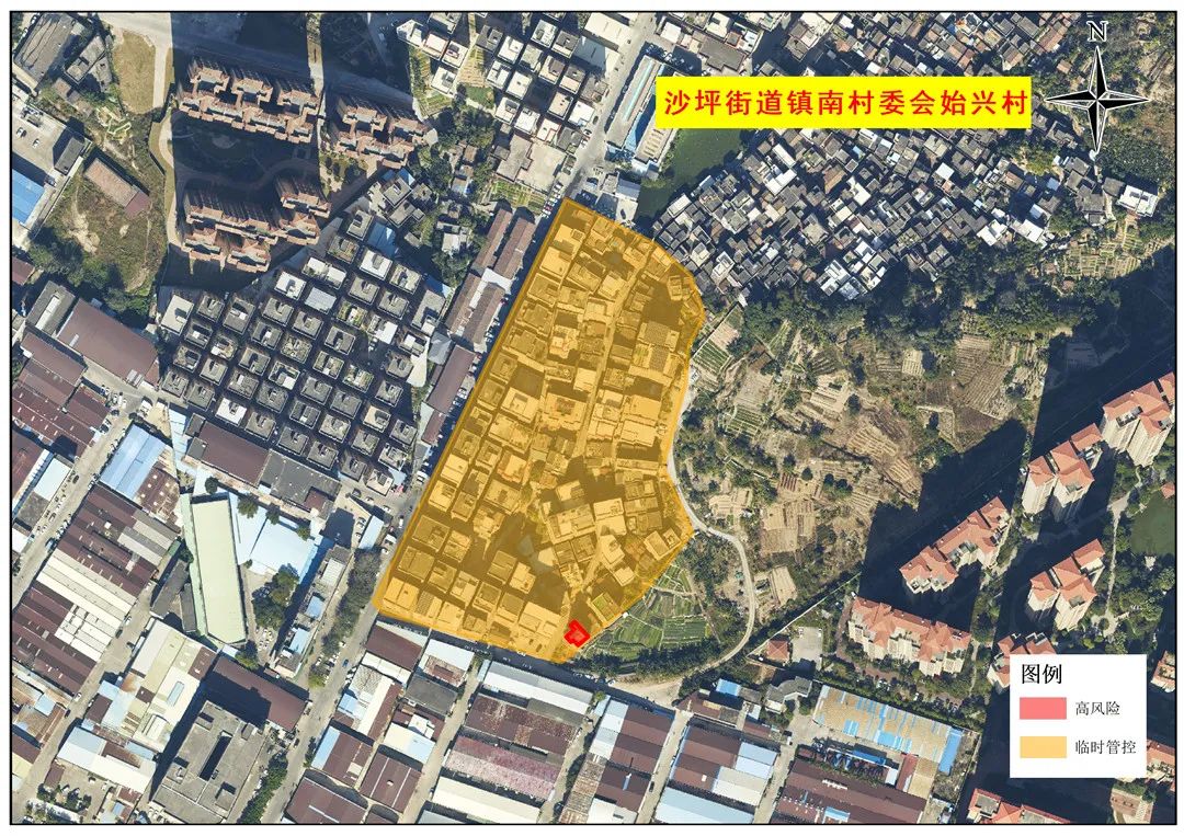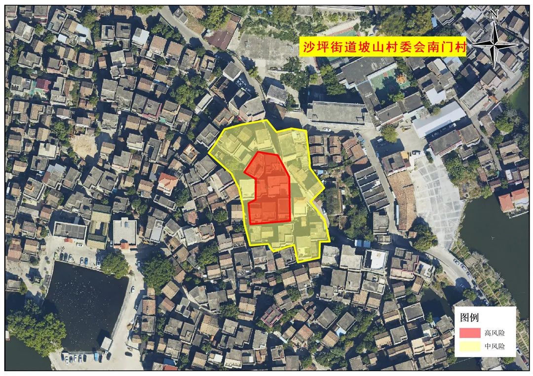 沙坪街道坡山村委会南门村东至138号、南至65号、西至125号、北至130号围闭区;