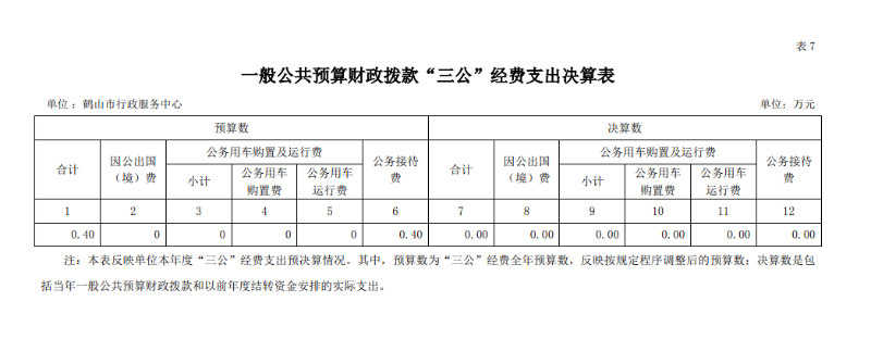 鹤山市行政服务中心一般公共预算财政拨款“三公”经费支出决算表