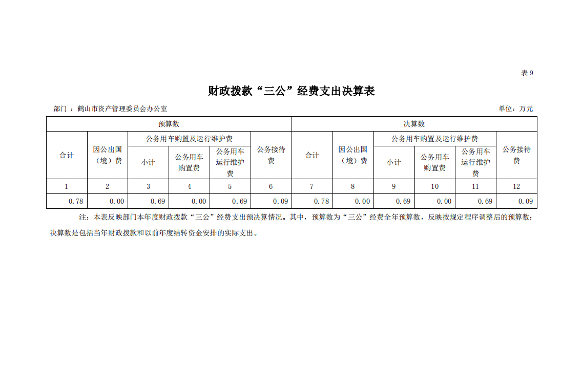 2022年度鹤山市资产管理委员会办公室财政拨款“三公”经费支出决算表