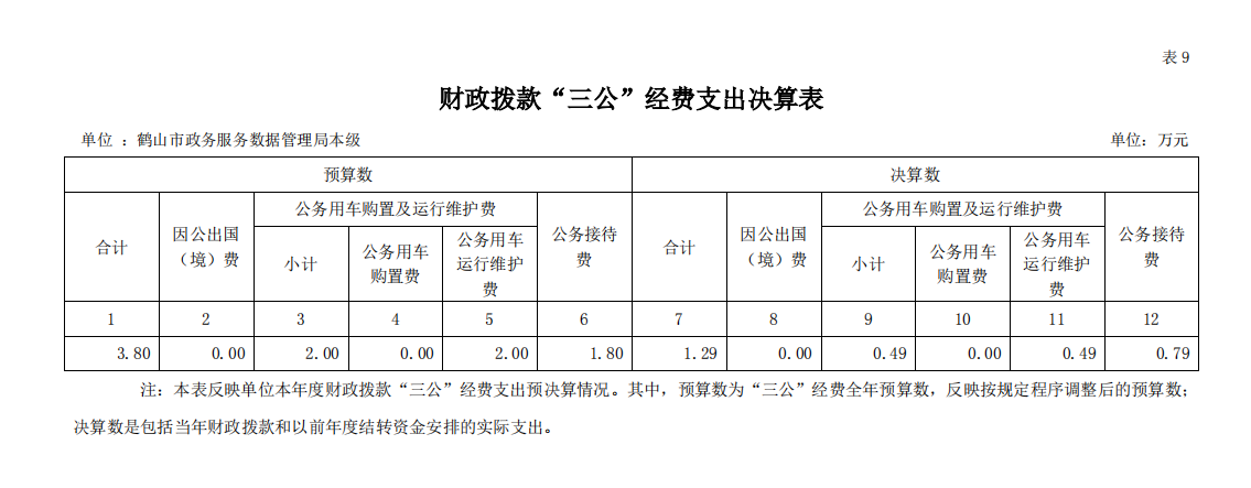2022 年度鹤山市政务服务数据管理局本级财政拨款“三公”经费支出决算表