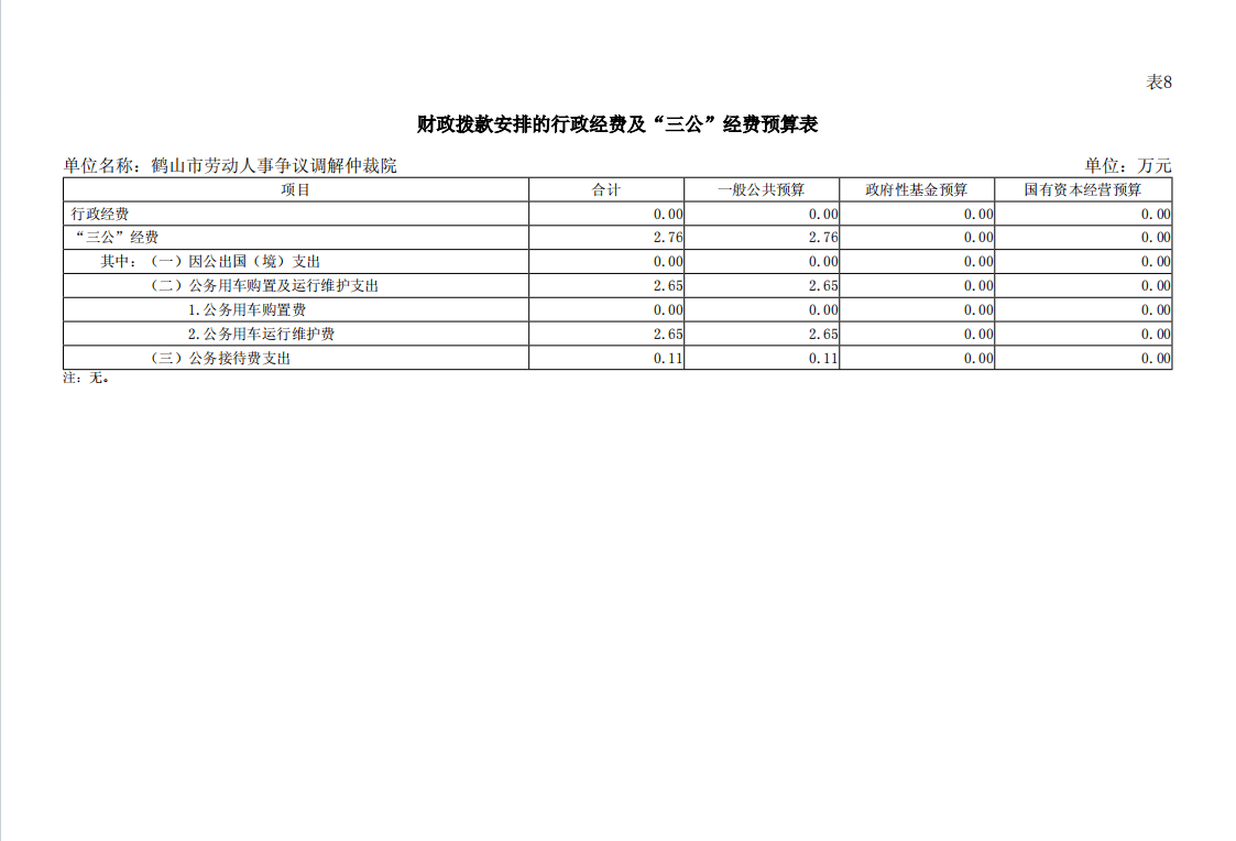 2024年鹤山市劳动人事争议调解仲裁院“三公”经费预算表