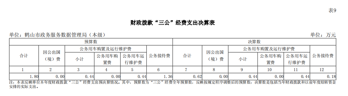 2023年鹤山市政务服务数据管理局(本级)财政拨款“三公”经费支出决算表