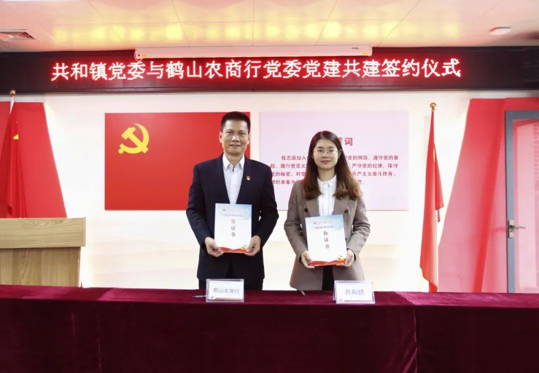 为进一步落实好乡村振兴发展战略,用好“党建+金融”这把利刃,赋能乡村基础设施建设和产业发展,3月28日,鹤山市共和镇党委与鹤山农商银行党委在来苏村举行了“党建共建推动乡村振兴”签约仪式。