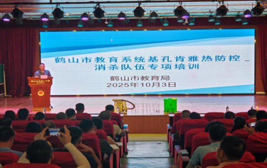 10月3日下午,鹤山市教育局在沙坪街道第一小学峻廷湾校区开展了教育系统基孔肯雅热防控消杀队伍专项培训,全市158个校区共306名队员参加。