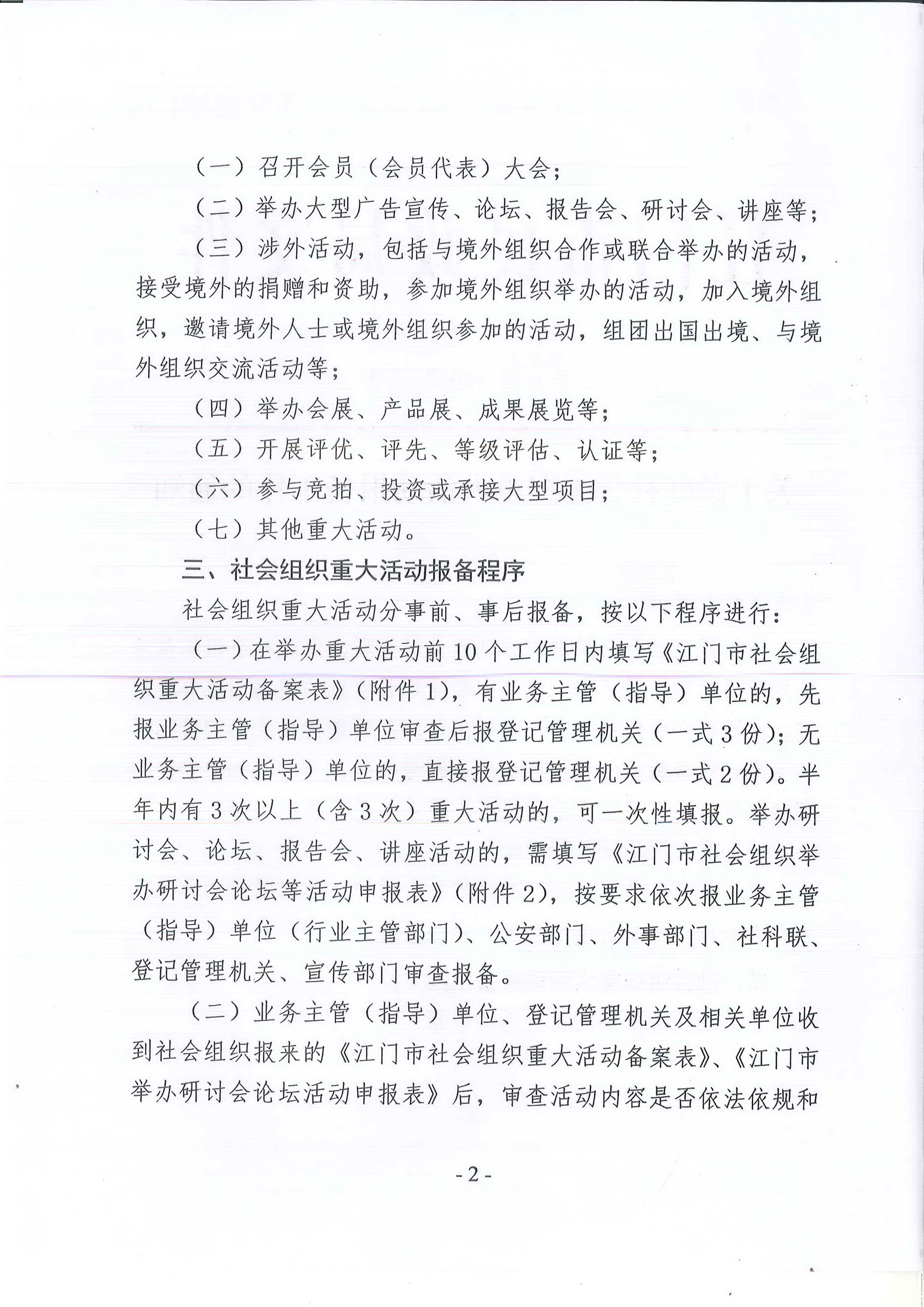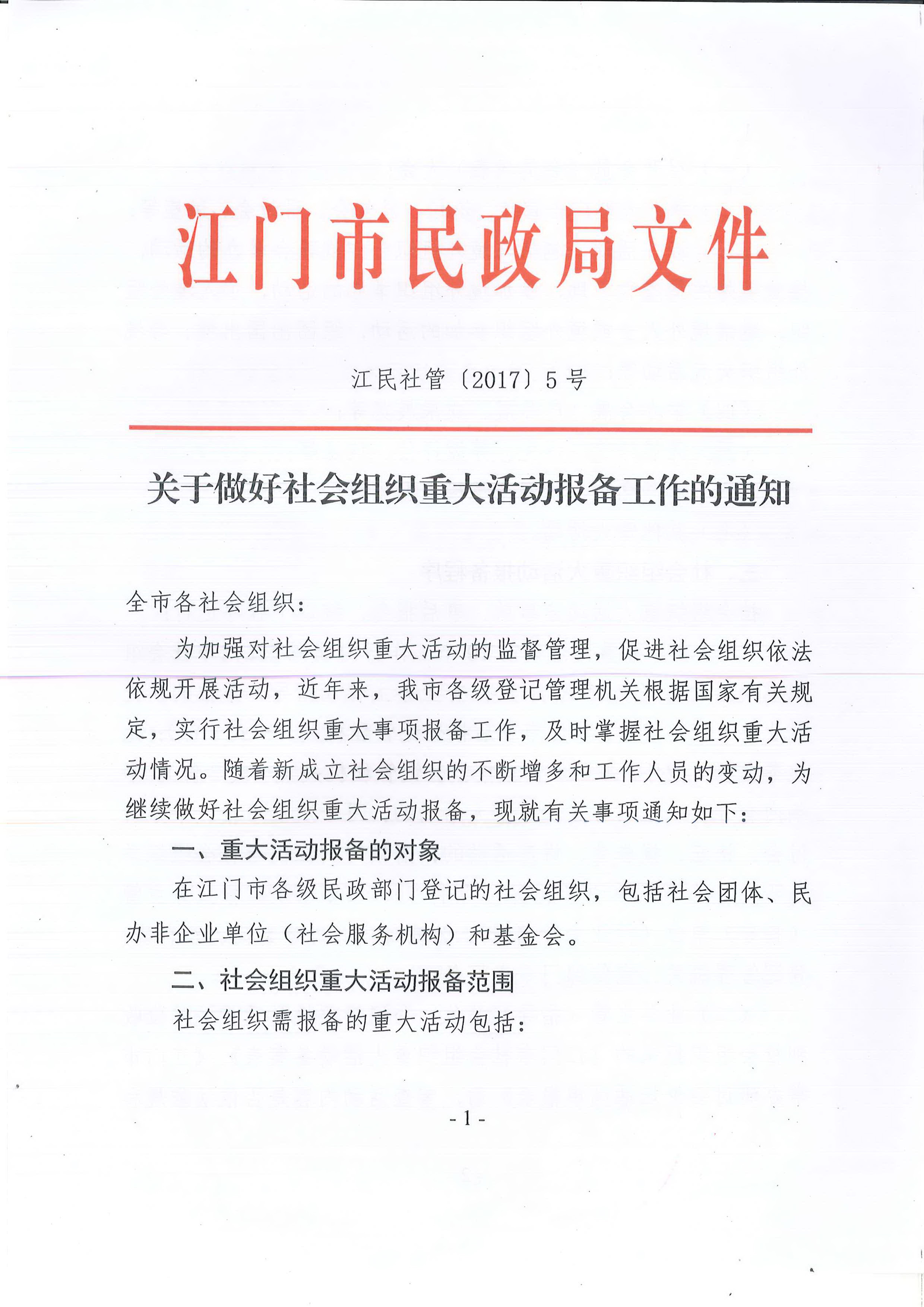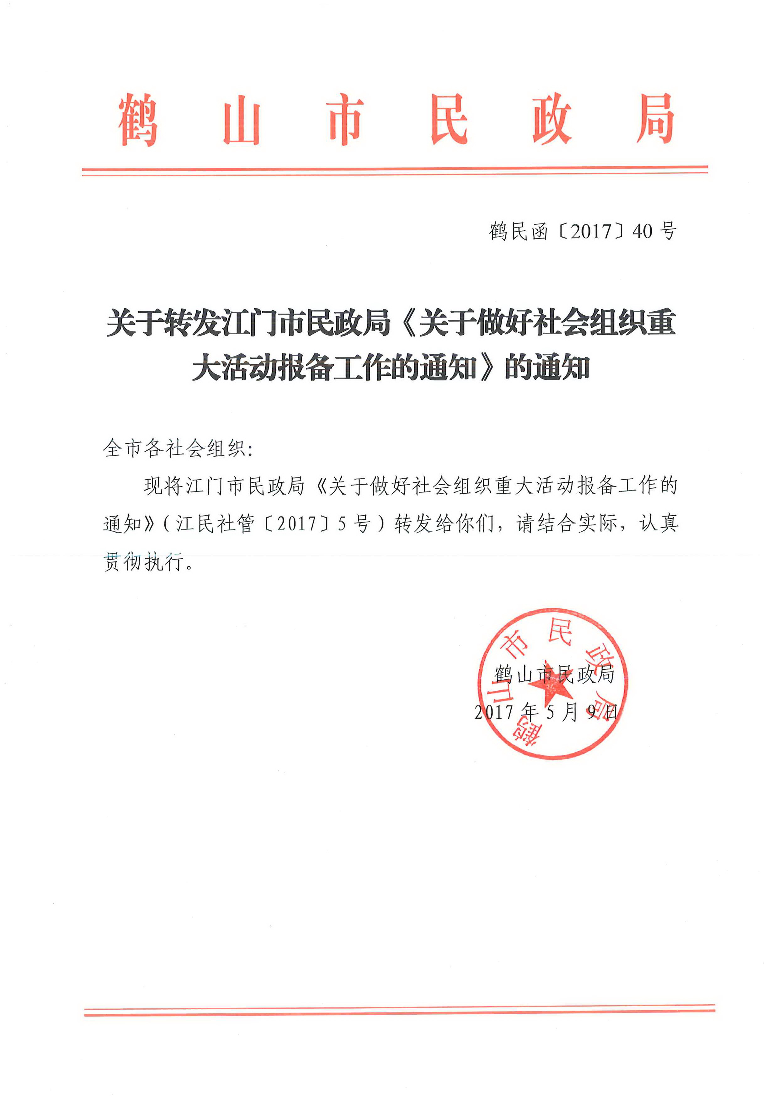 关于转发江门市民政局《关于做好社会组织重大活动报备工作的通知》的通知