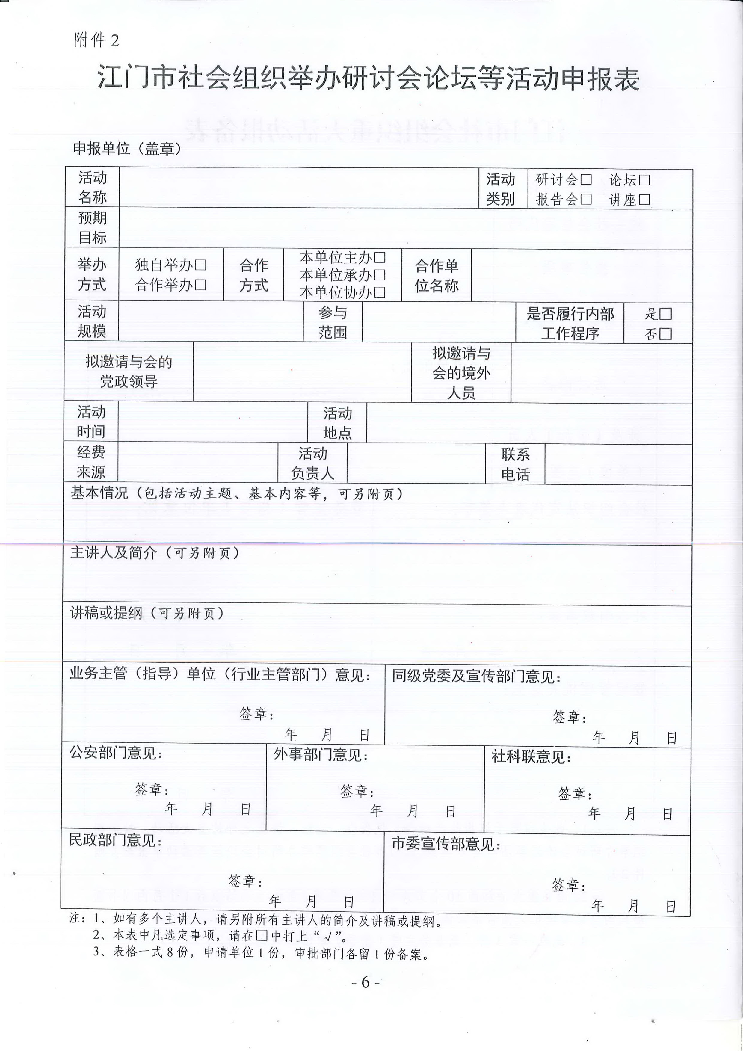 附件1:江门市社会组织重大活动报备表