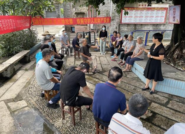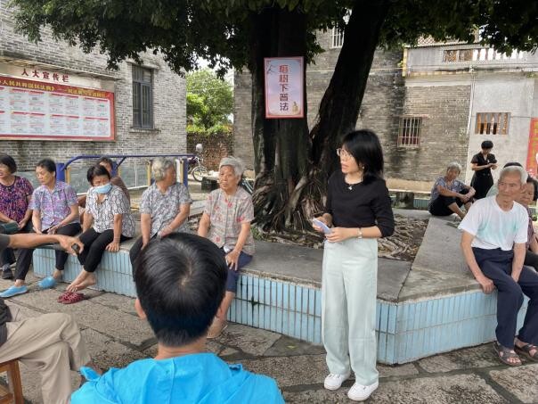 龙口司法所在龙口镇霄南村开展“榕树下普法”活动,村法律顾问刘惠敏律师、黄彩霞律师向村里老年人揭露诈骗分子“养老服务”“养老项目”等诈骗骗局,提醒老年人提高警惕、不贪图蝇头小利。
