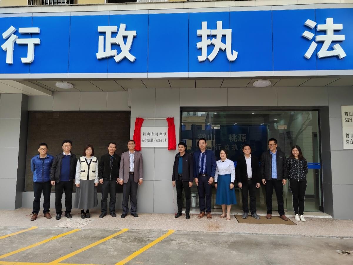 今年以来,鹤山市司法局积极推动省市县乡四级全覆盖的行政执法协调监督工作体系建设,创新协调监督方式方法,探索依托司法所设立镇街行政执法协调监督机构的工作模式,补齐了镇街层级缺少执法监督和协调内部执法争议部门的短板,推动行政执法监督权限和力量向基层延伸。2022年3月1日,江门市首个镇级“行政执法协调监督办公室”在桃源镇挂牌成立,以“三个一”工作模式率先打响镇(街)行政执法协调监督“行动战”,提升执法监督效能,进一步规范行政执法行为,提高行政执法水平。