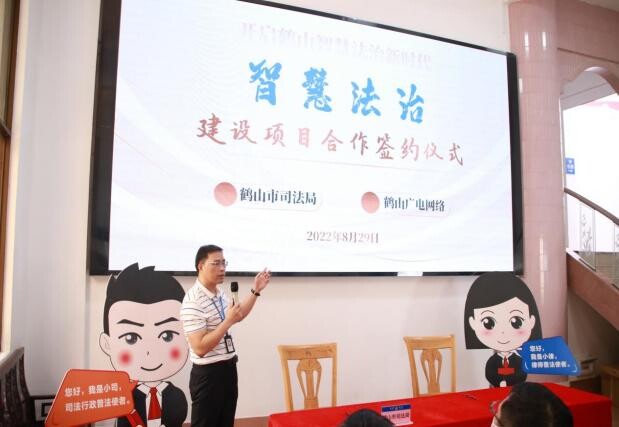 鹤山法治建设的变革和发展,与时代大潮同行,与科技创新同进。8月29日下午,鹤山市司法局与广东省广播电视网络股份有限公司江门鹤山分公司(以下简称“鹤山广电网络”)举行智慧法治建设项目合作签约仪式,开启鹤山智慧法治建设新时代。