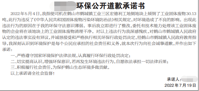 柔性执法,提升办案质效。探索“非现场执法”“电子送达”等办案新模式,引导执法对象及周边市场主体下载并注册“粤商通”APP,切实减少日常行政执法对经营主体的影响。树牢“执法为民”理念,广泛运用说服教育、劝导示范、警示告诫、指导约谈等方式开展日常行政执法活动。近日,《江门日报》刊登了一则《环保公开道歉承诺书》,这是鹤山市内镇(街)首宗环境违法案件公开道歉、承诺守法降低罚款案例,也是推行“包容审慎执法”的一次创新试验,传递了柔性执法的温度。