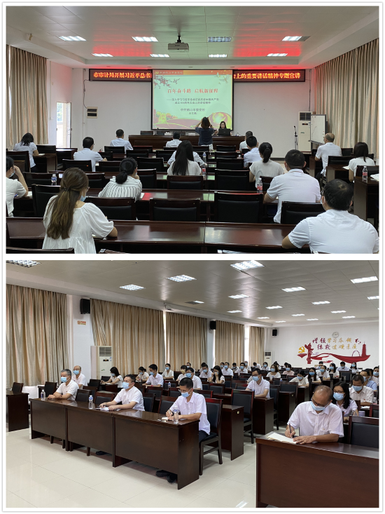 为贯彻落实习近平总书记在庆祝中国共产党成立100周年大会上的重要讲话精神,近日,市审计局联合市委编办、市统计局,召开学习习近平总书记“七一”重要讲话精神专题宣讲报告会。会议邀请中共鹤山市委党校培训办副主任王艺帆老师作宣讲报告,我局全体党员干部、积极分子参加学习。