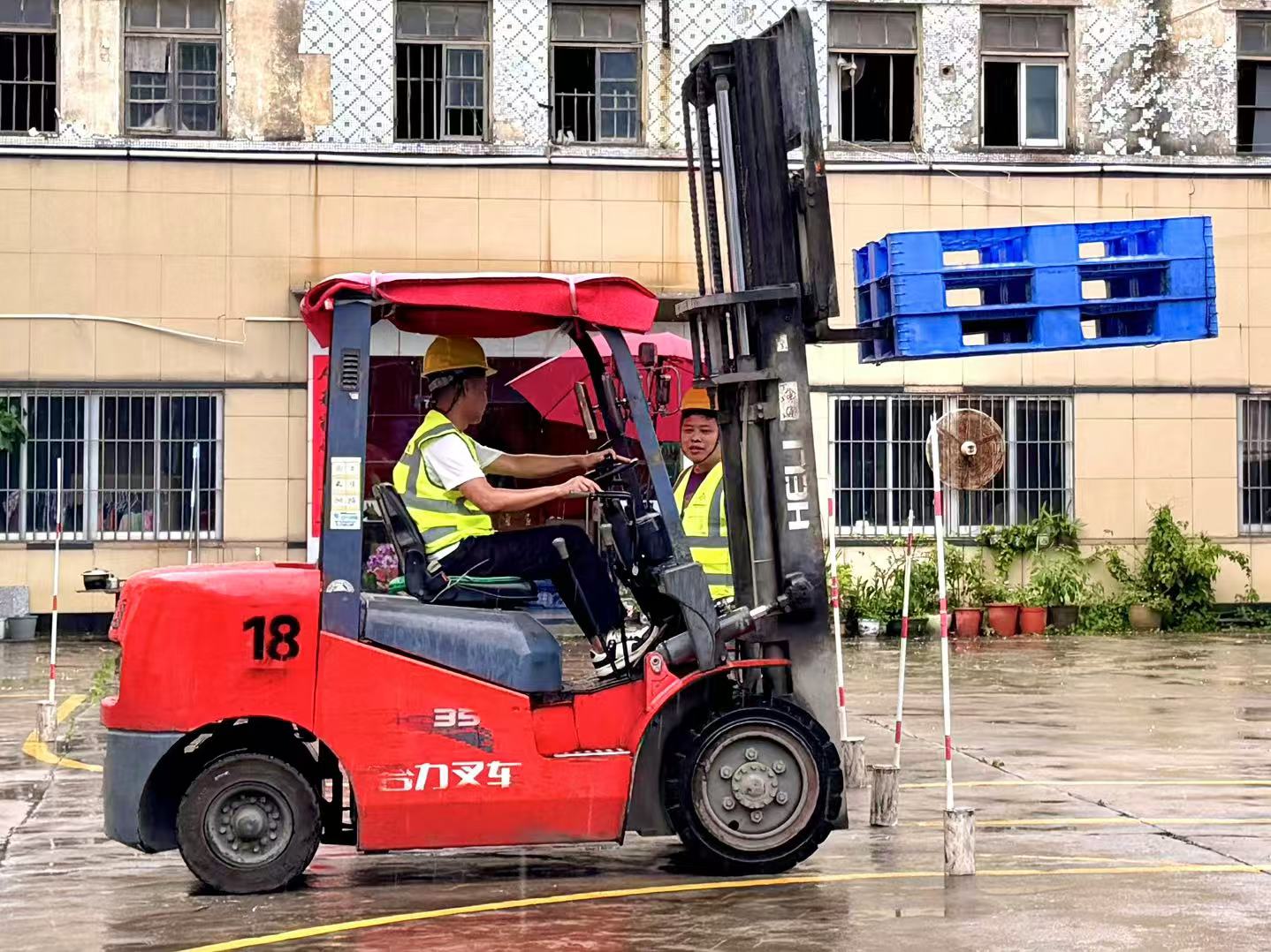 ▲居民在和平社区叉车培训基地内学习叉车操控技能