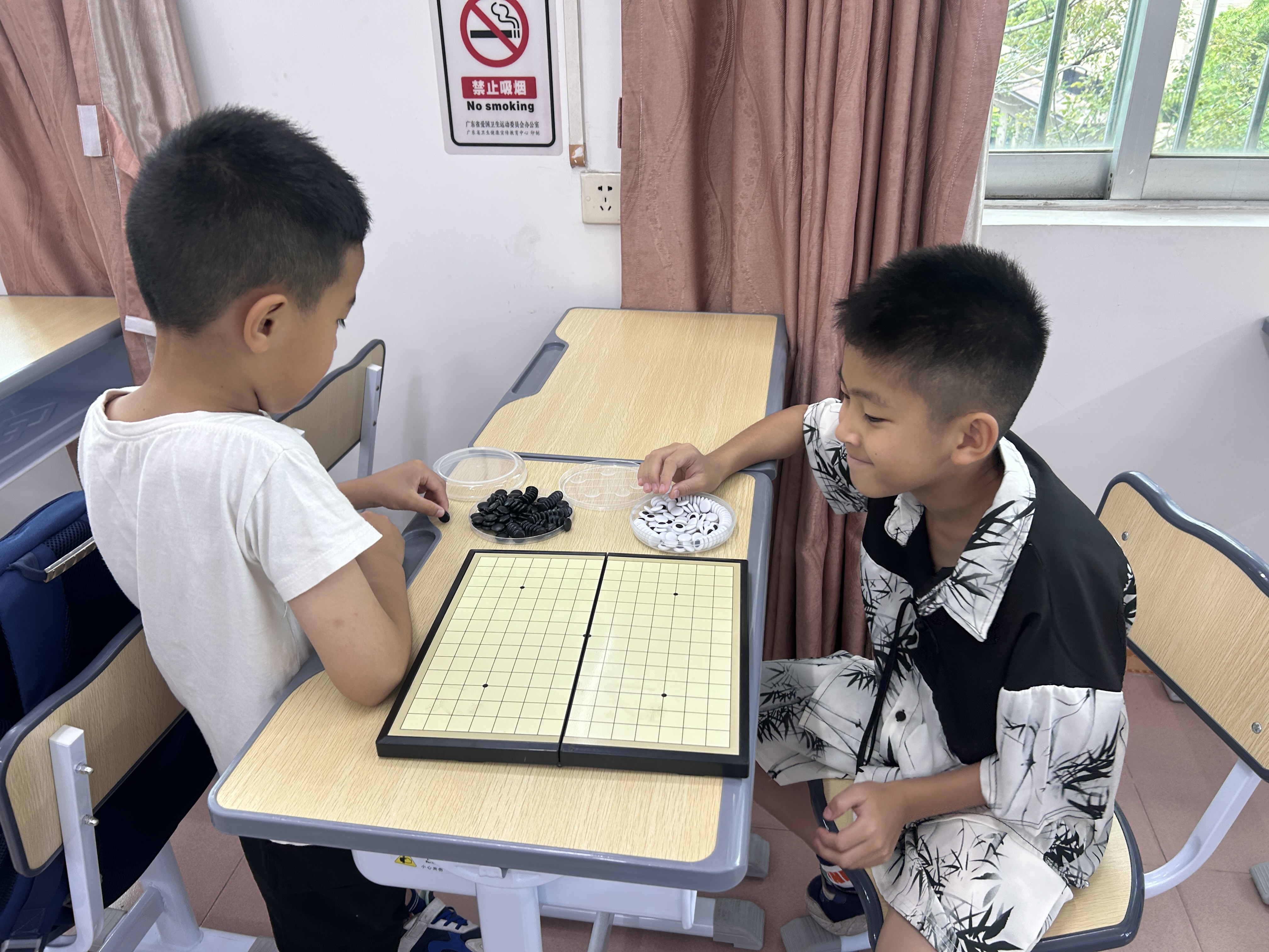 ▲和平社区青少年在暑托班上学习五子棋