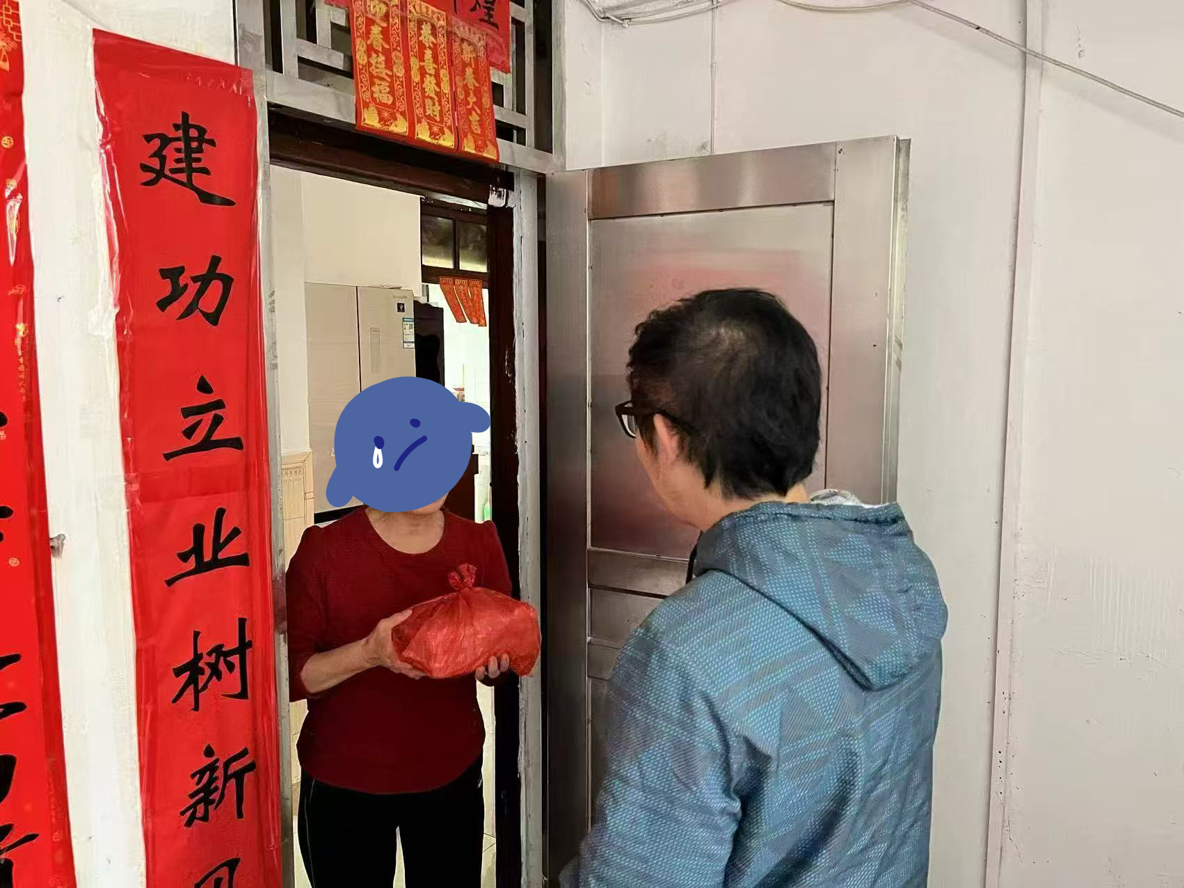 ▲和平社区为居民送餐上门