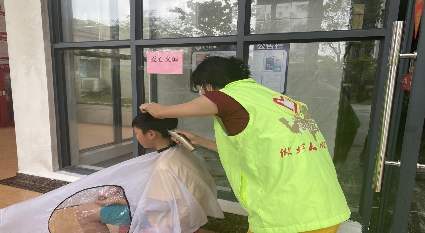 ▲和平社区“社区合伙人”为居民理发”
