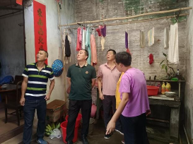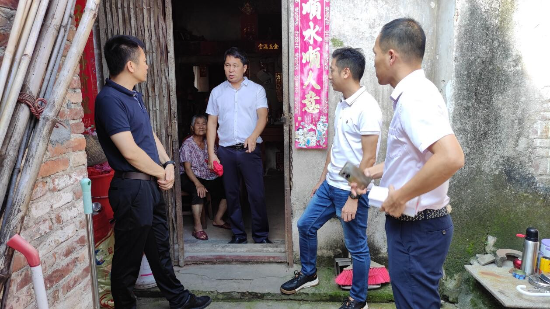 街道党工委副书记、办事处主任李炎壮到桥凼村到玉桥龙潭里牌坊、易涝点狮特龙公司危墙、黄宝坑村低洼点察看实地情况,并探望临灾转移群众,详细询问居住情况