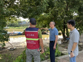 街道党工委书记张雁威到西江边及沙坪河垂钓处、黄宝坑排涝站和城区易涝点等重点领域进行实地巡查
