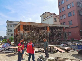 巡查在建自建房,要求屋主注意建筑材料和机械的摆放并做好安全加固,在恶劣天气来到前及时停止高空作业