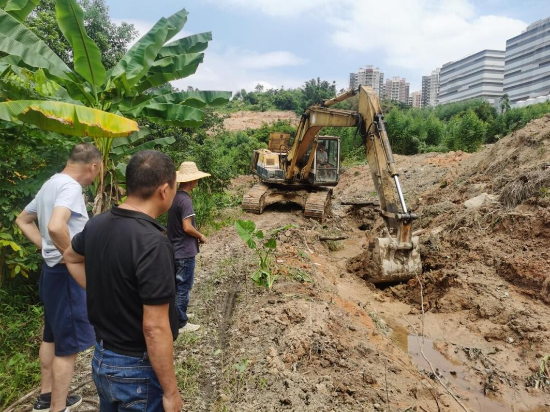 组织施工队对渤海意向地块清表现场疏通隔水沟,杜绝黄泥水对元溪村造成影响