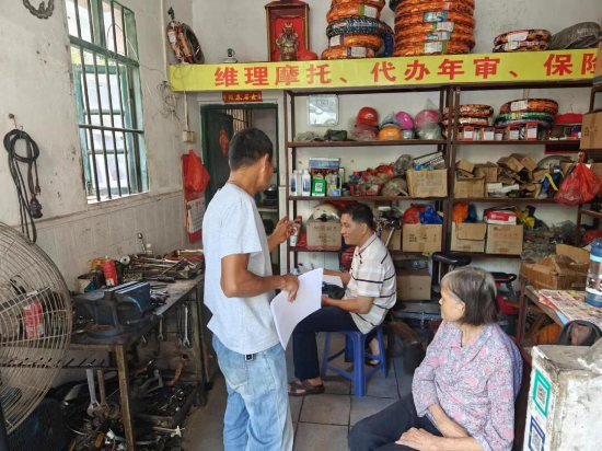 沿街商户派发防御台风通知,提醒周边商户及村民及时做好防御措施