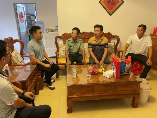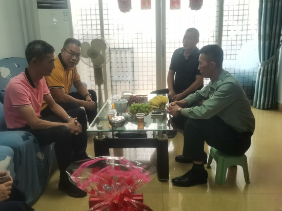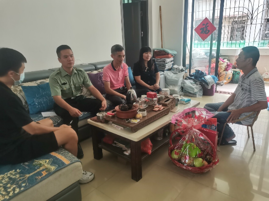 ▲退役军人服务站和村(居)委会干部到退役军人家中进行走访慰问