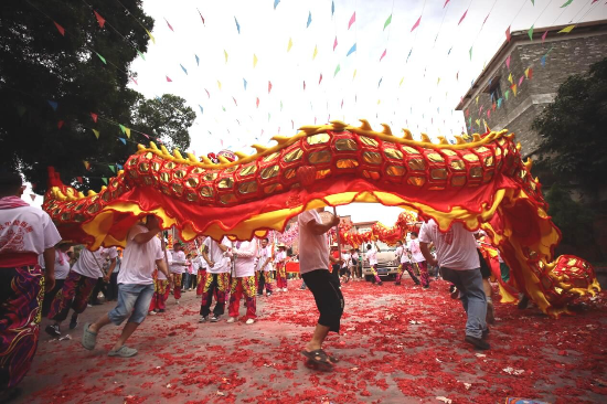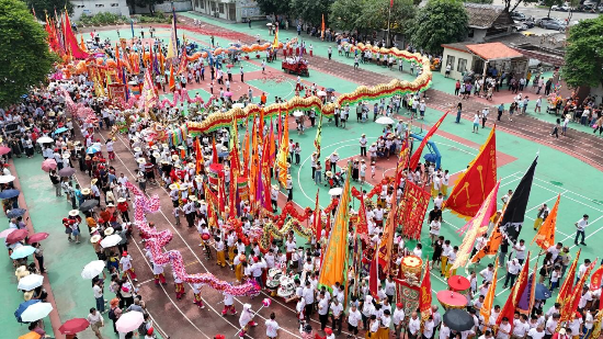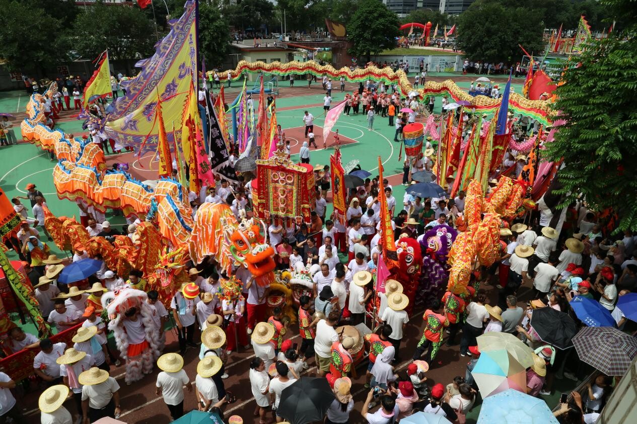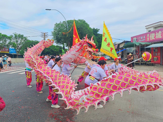 活动现场万人空巷、彩旗招展、罗伞矗立、锣鼓齐鸣、龙狮起舞,巡游队伍一路舞龙、舞狮、锣鼓助兴,巡游至各村,队伍绵延数公里,所到之处鞭炮齐鸣,到处洋溢着一片欢腾的热闹气氛。