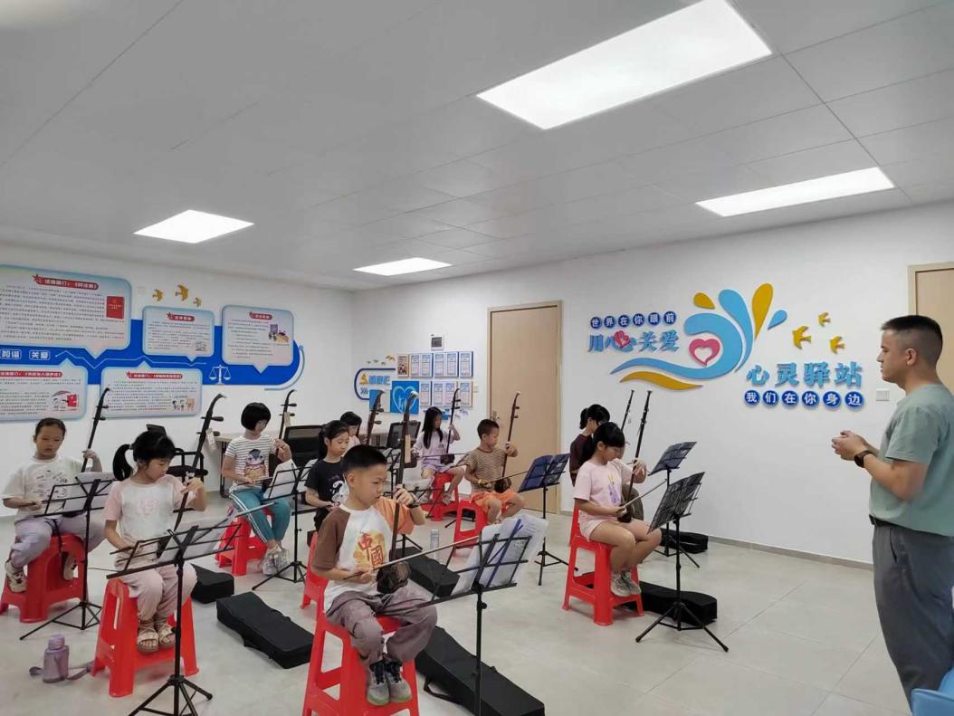 ▲孩子们在雁山社区学习拉二胡
