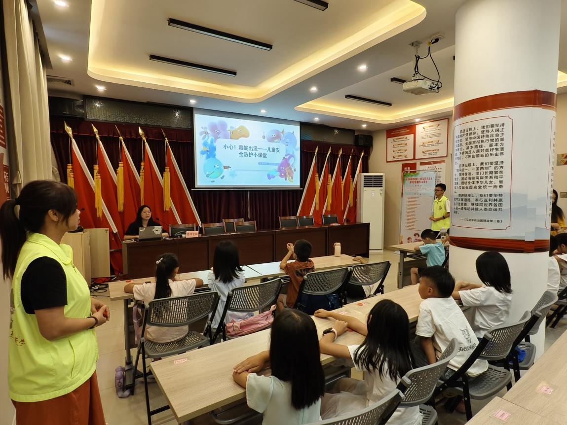 这些生动有趣的课堂都是沙坪街道引导共建单位提供社区暑托服务的生动缩影。沙坪街道持续发挥社区“大党委”联建联管联享作用,引导共建共驻单位现有的医护、教育、司法、外语等专业资源下沉社区,开设垃圾分类、中医传古今、儿童心理及情绪管理等课程,让“托得住”和“托得好”成为现实。如新华社区在市林业局的支持下,开展森林防火及毒蛇小知识课堂,通过图文展示、互动问答的形式,趣味讲解安全知识;雁山社区携手市检察院,开展模拟法庭暑托课程,以“沉浸式”体验真实庭审氛围,让孩子掌握案件的法律知识;义学社区联合鹤山市红十字会青少年急救知识小课堂,针对学生低龄特点,以通俗易懂的语言和趣味动画视频,向孩子们讲解日常生活中常见的急救场景。