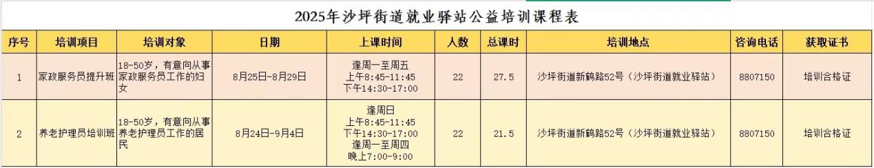 就业技能公益培训课程