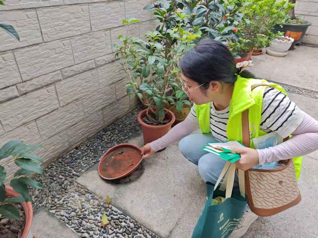 战“蚊”不仅在前线,更在千家万户。沙坪街道第六小学紧扣学生多居住于雁山社区时代倾城、十里方圆等小区的实际,以“校社同频、家校同心”为抓手,精准对接雁山社区公共卫生防疫需求,开展“大家访”行动,以班级组建“班主任+科任教师”小组,上门指引并协助家庭检查花盆底托、闲置容器、阳台地漏、空调排水管等易积水处,边示范清理边结合手册讲“七天七招”等防蚊灭蚊知识,普及点蚊香、挂蚊帐、装纱窗等实用技巧,真正实现“教育一个学生、带动一个家庭、影响一个社区”的辐射效应。