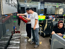 ▲党群服务中心工作人员开展“扫黄打非”和文体场所安全检查