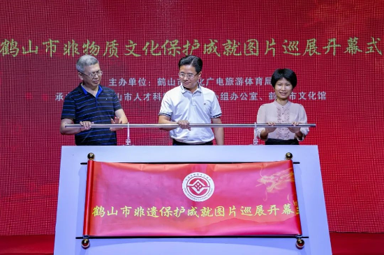 6月15日上午,鹤山市非遗项目代表性传承人授牌仪式暨鹤山市非遗保护成就图片巡展开幕式在市文化馆举行。中共鹤山市委常委、鹤山市委宣传部部长张镇就,市委组织部部务会议成员、市直机关工委副书记何杏仪,市文广旅体局副局长任国明及有关人员,市人才科技工作领导小组办公室有关人员,各镇街分管领导及文化站长及县级非遗传承人等出席了本次活动。