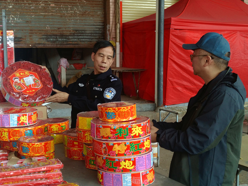 按照既定的工作方案,镇委书记冯栢强亲自带队,组织镇安监、镇消防、镇派出所、镇市场监管等部门,连同鹤山市安监局、公安局、市监局,检查了佳惠超市、好邻居超市、址山市场、富江沐足等人群密集场所,重点对生产经营单位的安全隐患进行排查,责令整改存在的问题,督促落实安全生产主体责任制,加强管理确保节日期间安全生产。当天查处了5处无证经营烟花炮竹商铺,执法人员收缴大批烟花炮竹。