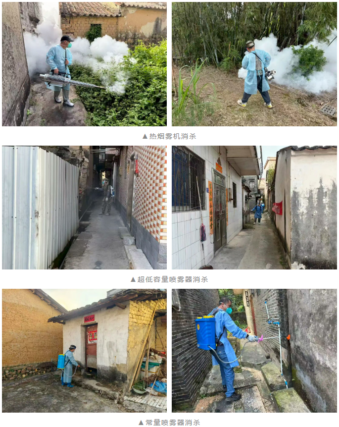 面对新莲村委会龙岗旧村冷巷纵横、杂草丛生、闲置房屋多的复杂环境,址山镇精准施策,组建起一支250人的专业消杀队伍,并创新采用“挂图作战+立体防控”模式,打响了一场全域消杀攻坚战。工作中,队伍依托清晰的“作战图”,明确标注每条消杀路线,对圩镇实施“包围式”逐步推进。消杀组运用超低容量喷雾器、常量喷雾器、热烟雾机等多种专业设备,对公共区域、卫生死角进行“地毯式”喷雾处理,全力构筑圩镇消杀防护带。
