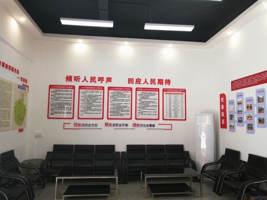 由于原镇人大代表中心联络站与镇人大办公室合署办公,能容纳的人员有限,导致人大代表中心联络站的活动场所受限,不便于活动的开展。今年年初,在市人大常委会和镇党委的支持下,镇人大与鹤山市农商银行共同打造人大代表中心联络站与金融服务联络站相结合的服务场所。