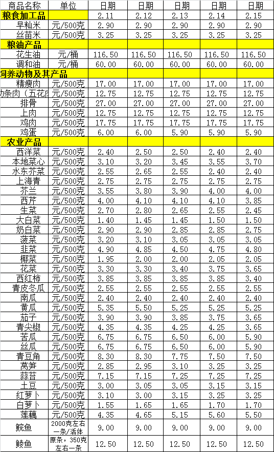 百姓菜篮子价格动态(2.11-2.15)