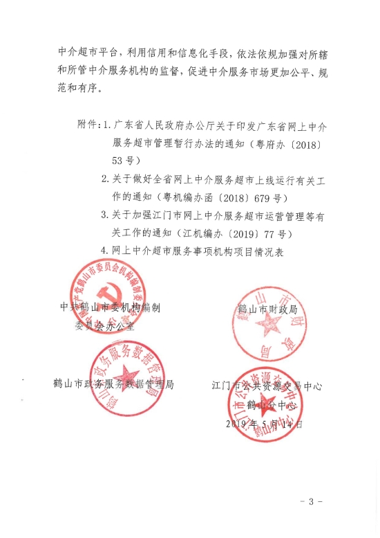 附件3:江机编办〔2019〕77号 关于加强江门市网上中介服务超市运营管理等有关工作的通知.pdf
