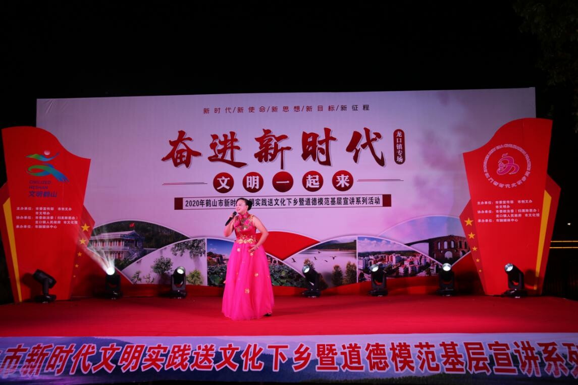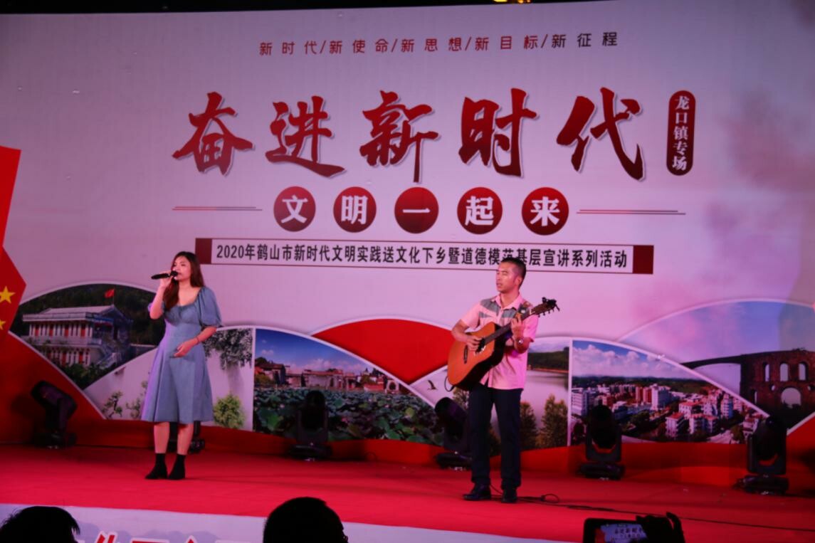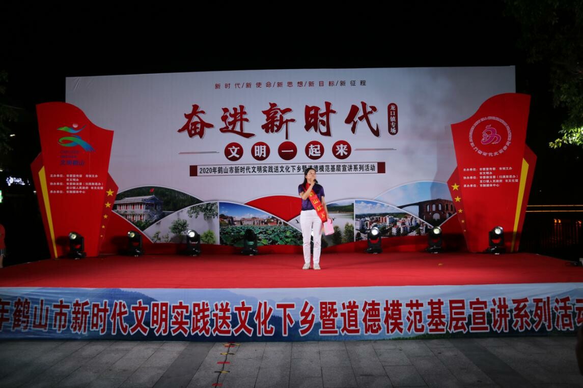 此次晚会,是鹤山市“奋进新时代 文明一起来”新时代文明实践送文化下乡系列活动的第八场。早前,8月13日亦在龙口镇兴龙工业区举办了“为文明一起加油”2020年鹤山市新时代文明实践进园区暨道德模范故事巡演系列活动。这两场活动的举办,不仅给龙口圩镇周边的居民带来了艺术盛宴,大大丰富了龙口镇人民的精神文化生活,更是弘扬了社会正能量,营造健康向上、文明和谐的社会氛围,使创文意识深入民心,人人争当创文使者,为鹤山市创建全国文明城市凝聚起磅礴的精神力量。