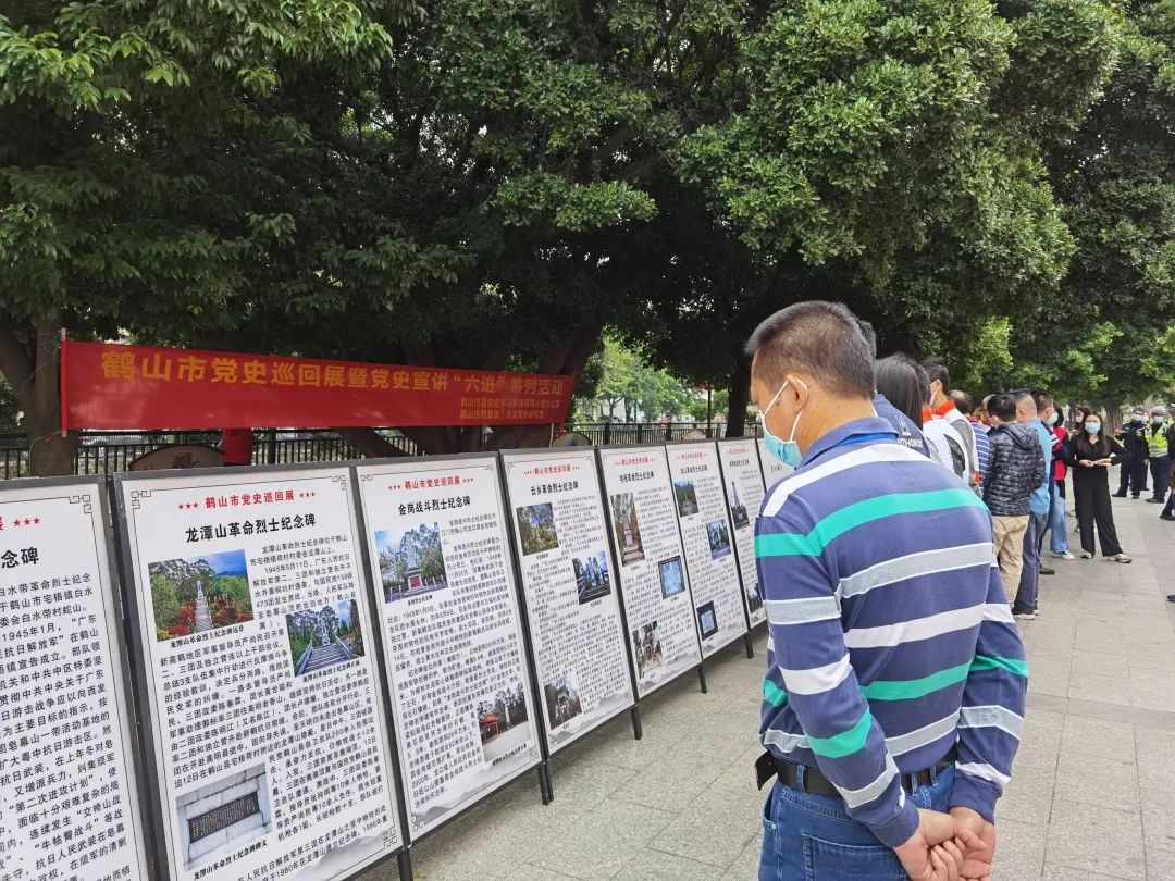 11月17日上午,市委党史学教办将“赓续红色血脉 弘扬光荣革命传统”为主题的鹤山党史巡回展活动开进龙口镇河滨公园,47块展板向我镇干部群众详细介绍新民主主义革命时期发生在鹤山的主要历史故事、革命人物以及所形成的主要革命旧址。镇党史办组织全体干部职工、村(居)干部、“两新”书记约170人参加此次活动。此次活动还吸引了周边村(居)群众约300多人前来参观学习。