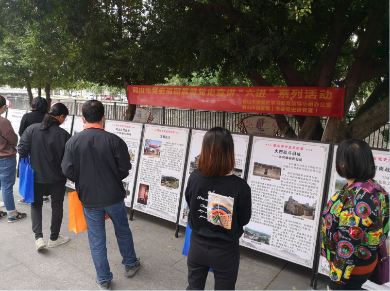 巡展以历史脉络和时间节点为主线,以图文形式全方位地展示了中国共产党在鹤山组织和团结广大人民群众进行革命、建设和发展壮大所走过的艰辛历程和取得的一个有一个的胜利,涌现出一批舍生忘死、气贯长虹的革命英烈。一幅幅遗址图片,一个个革命先烈人物事迹,深刻震撼了观看者的心灵。