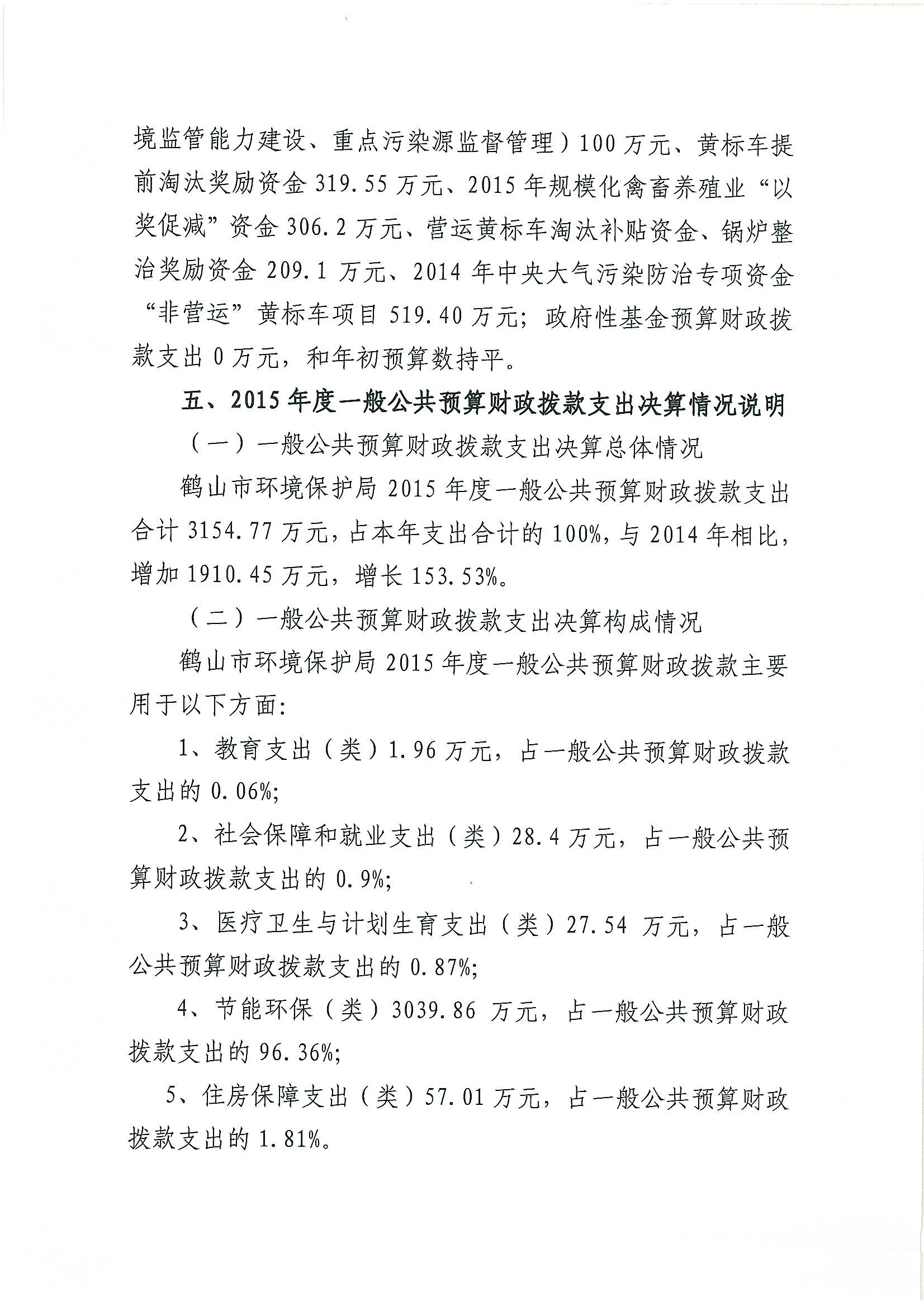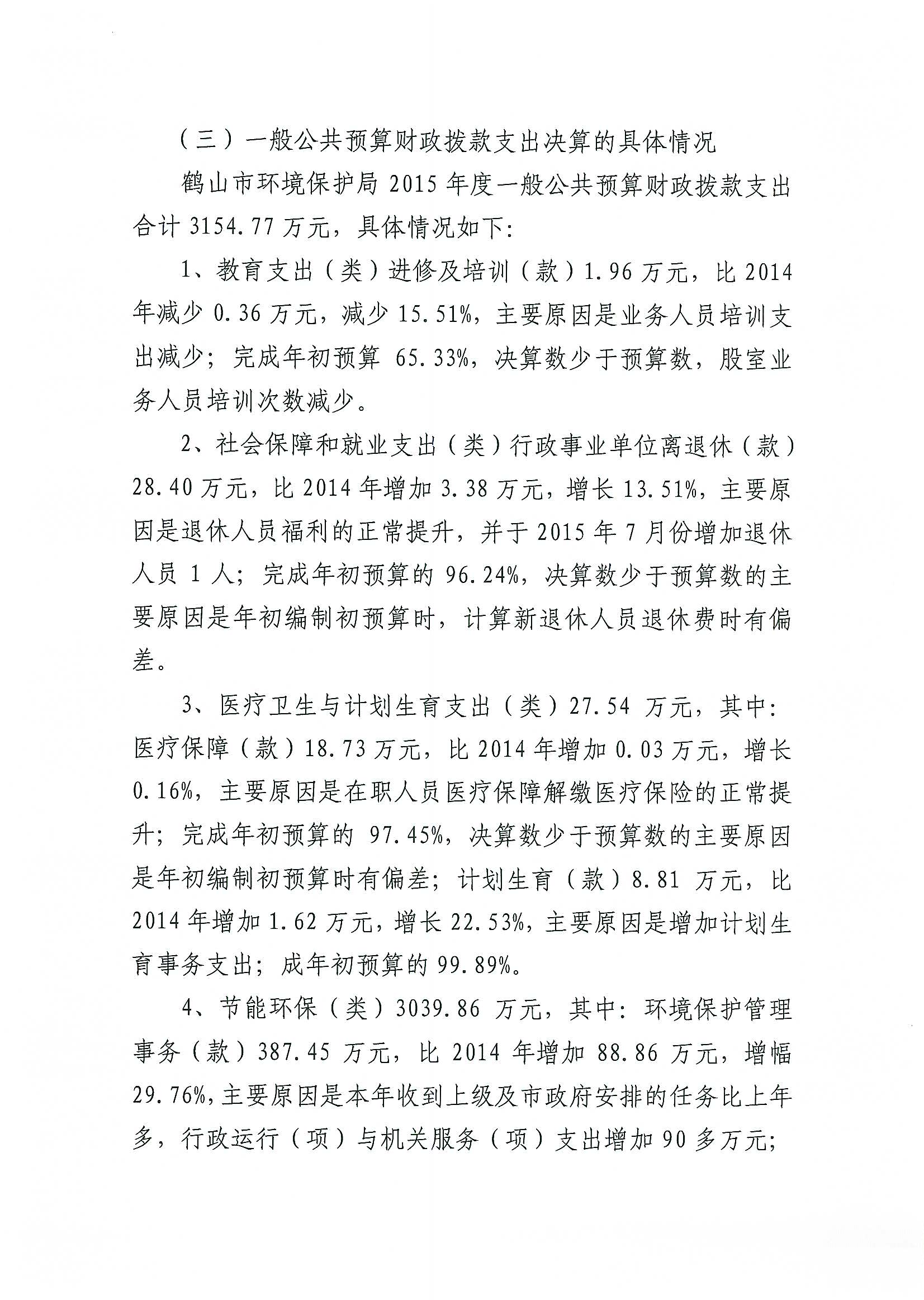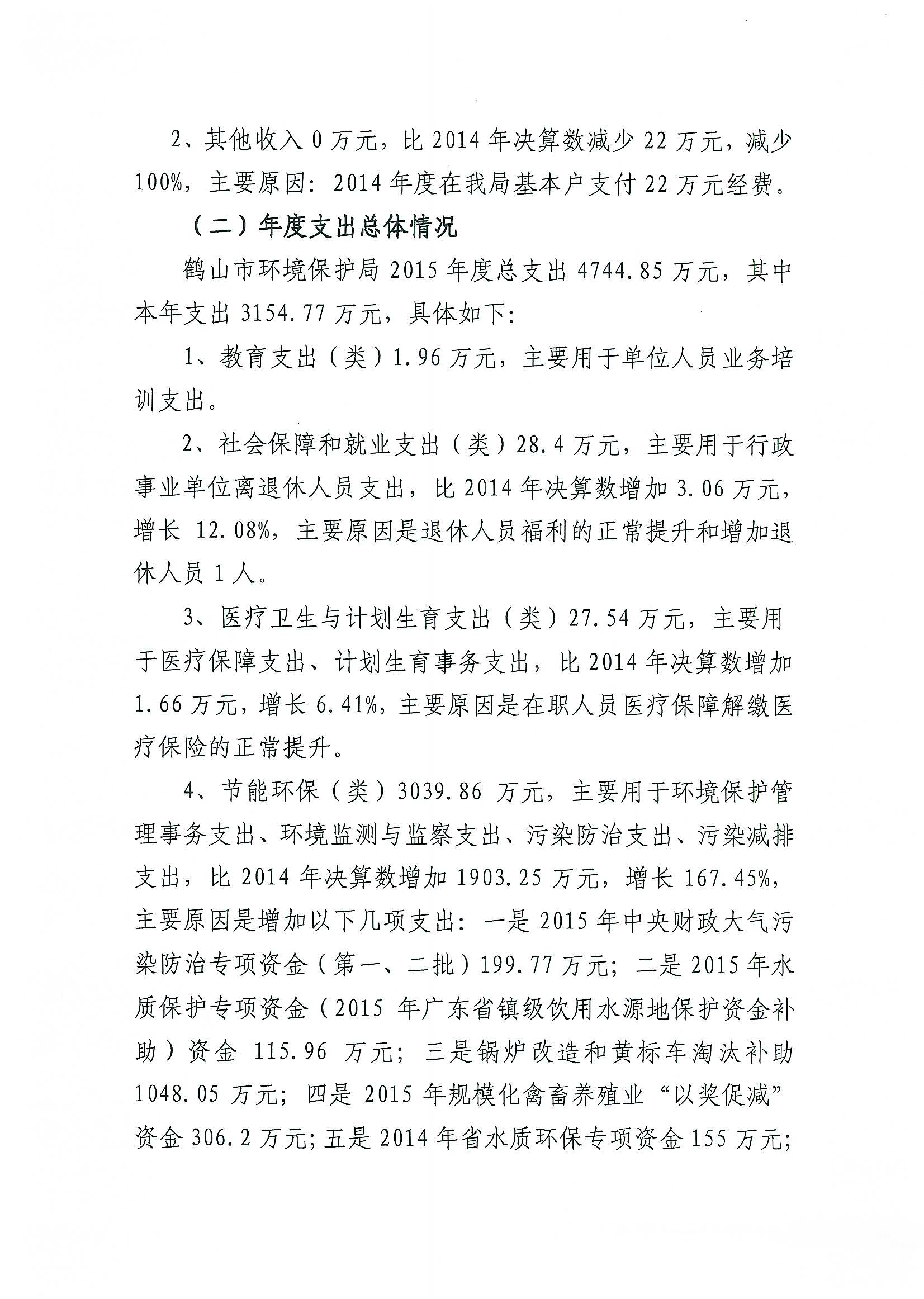 2015年鹤山市环境保护局部门决算公开